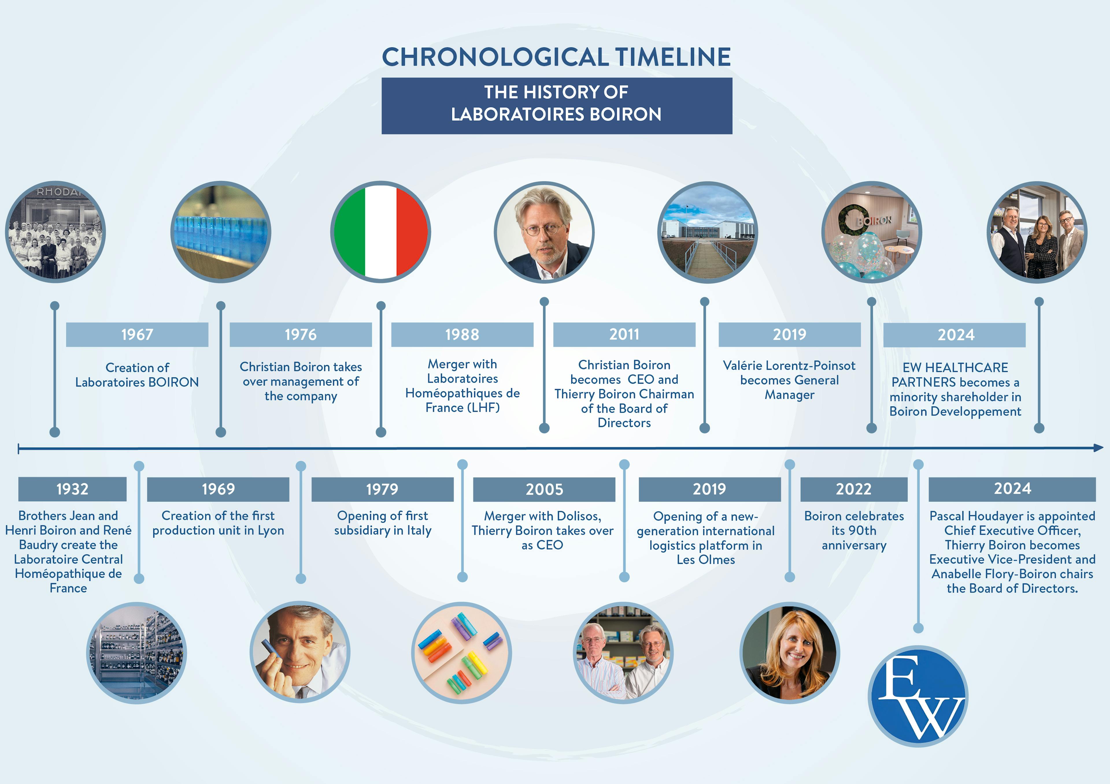 Společnost Boiron je příběhem rodiny, jejíž členové své životy a energii zasvětili rozvoji homeopatie. Prvopočátek vzniku společnosti se váže k roku 1932 a bratrům Jeanovi a Henrimu Boironovým.